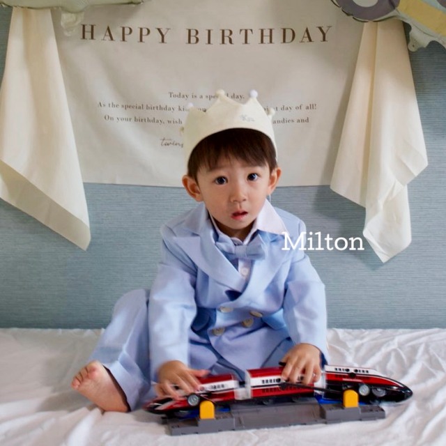 シーン▷結婚式・発表会・誕生日・入園式・入学式・七五三など 年齢▷0歳から小学校中学年ころ 七五三や入園入学式などのセレモニーなどにぴったりな優しいブルーの色味のジャケット+ベストスーツです。 ・蝶ネクタイ ・長袖シャツ ・パンツ ・ジャケット ・ベスト ・ブローチ 【詳細】 生地の厚み:普通 ストレッチ : × ウエストゴム:◯ ネクタイ取り外し:◯ ▷size 写真のサイズ表をご覧ください。 model 90サイズ着用 2歳0ヶ月, 80cm, 10kg 普段の洋服ジャストサイズ 90 ▷日本のものと比べてサイズ感は? ・ジャケット 身幅▶大きい 着丈▶変わらない ・ベスト 身幅▶変わらない 着丈▶変わらない ・シャツ 身幅▶変わらない 着丈▶変わらない ・パンツ ウエスト▶変わらない 着丈▶大きい ✳︎Monitor’s voice ✳︎ ・優しいブルーのお色が気に入りました♡ ・ネクタイも取外しが簡単で良かったです。 ..................................................... 色違いグリーン着用 model 120サイズ着用 4歳4ヶ月, 98cm, 13.8kg 普段の洋服ジャストサイズ 100~110 ..................................................... スーツとシューズを別々にご購入いただくよりもお得な価格にて、オプションでシューズもお選びいただけます。 ・ベビーシューズ(マジックテープタイプ)12.0cm,13.0cm ・キッズシューズ(紐タイプ)14.0,15.0,16.0,17.5cm いずれもblack,brown,whiteの3色展開です。 各シューズの詳細は、シューズ単品で販売しているページをご覧ください。ご不明な点がございましたら【質問する】からお問い合わせください。 複数購入時に予約販売の商品を含む場合は、全ての商品が揃い次第の発送となります。 ※在庫がある商品のみ先に発送をご希望の方は、別会計にてご購入下さい。 ..................................................... サイズ選択欄に予約表示がない商品は 、即納商品(ご購入日または翌日に発送)です。 お届けまでの日数の目安はwebの方はトップページ上部の【よくあるご質問】バナーから、payidアプリの方はブログの【よくあるご質問】からご覧ください。 より詳細なご質問は【ショップに質問】からお気軽にお問い合わせください。
