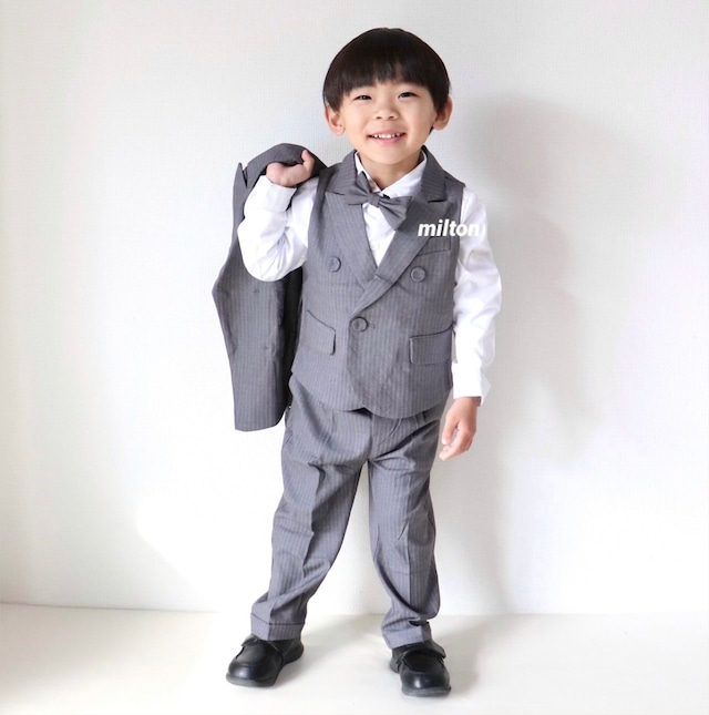 ⚫︎【グレーストライプジャケットスーツ】送料無料【商品番号j20】110 120 130 cm 男の子 スーツ ベビー キッズ フォーマル タキシード ベビーフォーマル キッズフォーマル ベストスーツ フォーマル 男の子 白シャツ 男の子フォーマル スーツセット スーツ 蝶ネクタイ 長袖 お食い初め お宮詣り 誕生日 ハーフバースデー 七五三 長袖 入園式 発表会 結婚式 長袖 ベスト 韓国子供服 かわいい おしゃれ milton_babykids