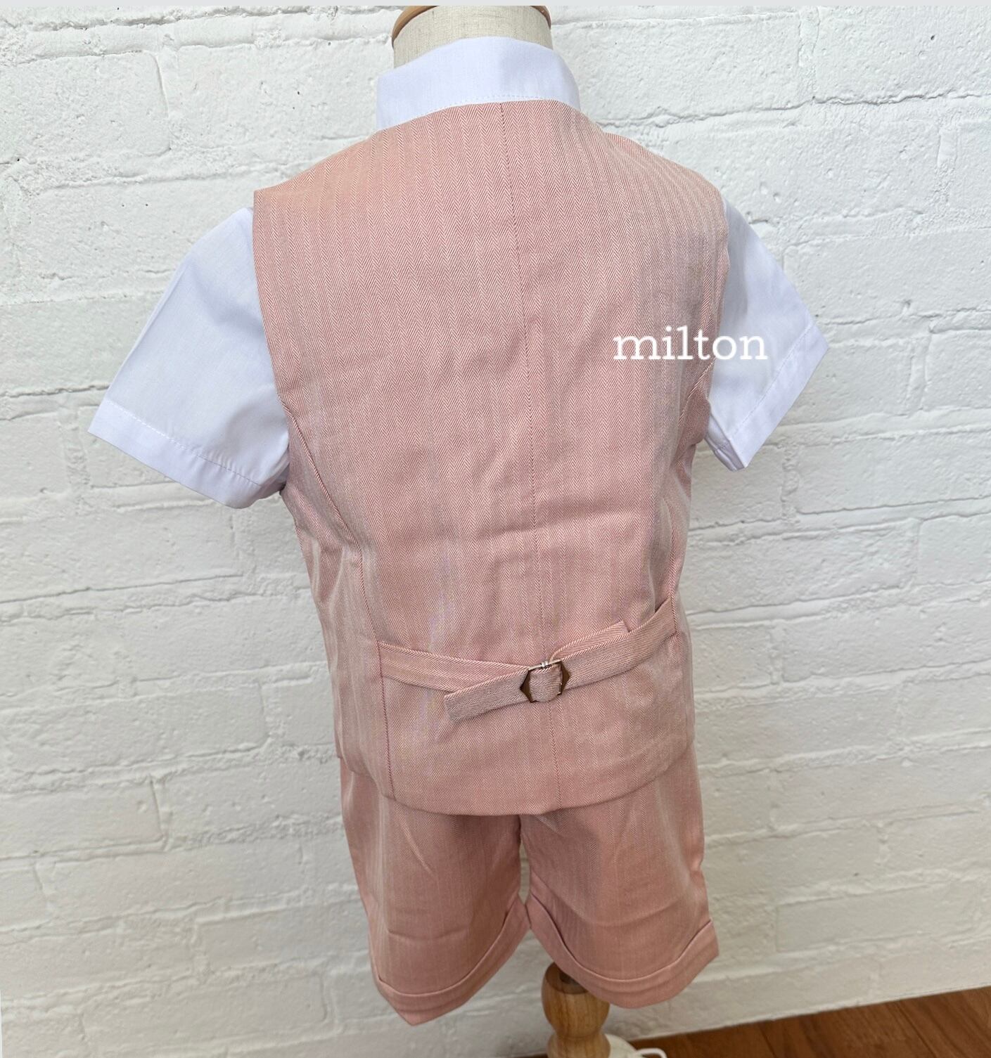 一部即納【ライトピンク半袖ベストスーツ】80 90 100 110 0歳 6ヶ月 1歳 2歳 3歳 4歳 おしゃれ 男の子 キッズ ベビー フォーマルスーツ スーツ ベージュ 淡色 セットアップ ナチュラル 子ども服 子供服 タキシード フォーマル セットアップ 半袖 キッズフォーマル ベビーフォーマル 4点セット 七五三 入園式 お誕生日 結婚式 オフホワイト ベスト 蝶ネクタイ 半袖 かっこいい 人気 セレモニー
