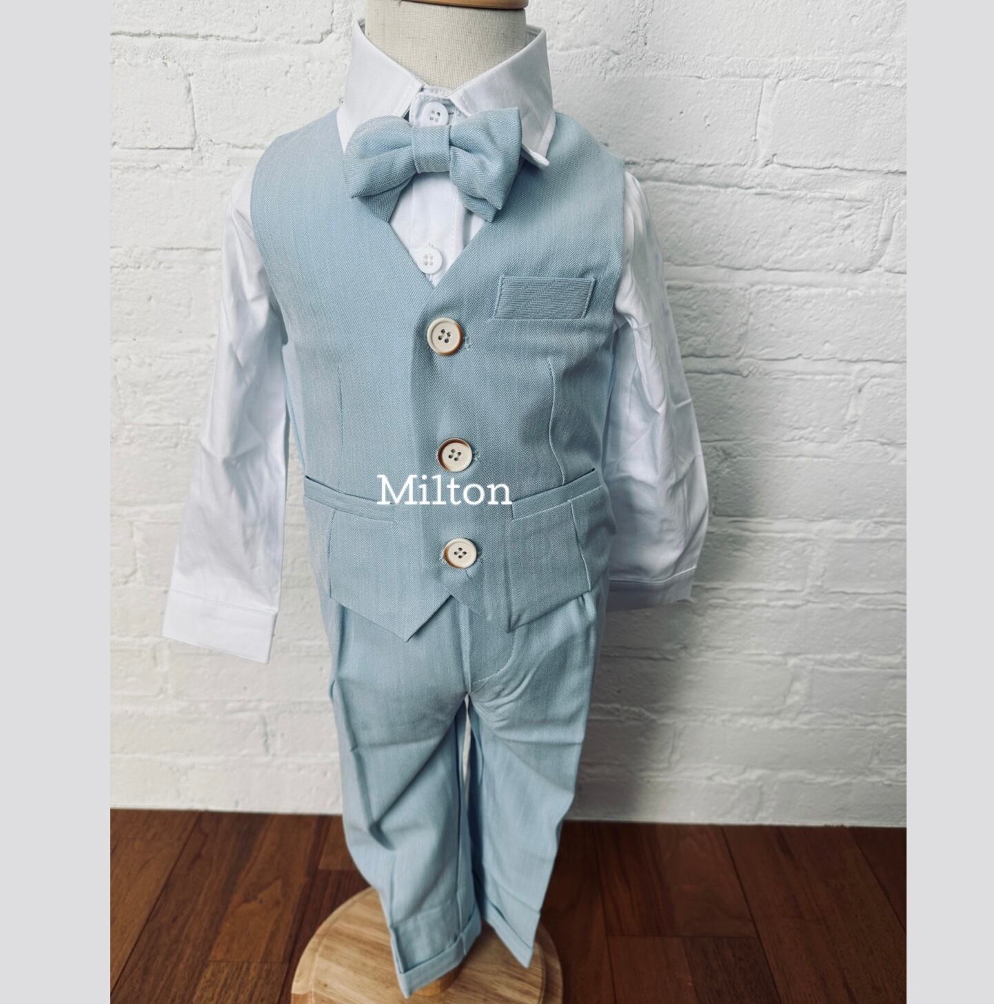 【ブルーベストスーツ】80 90 100 cm 男の子 スーツ ベビー キッズ フォーマル タキシード ベビーフォーマル キッズフォーマル ベストスーツ フォーマル 男の子 白シャツ 男の子フォーマル スーツセット スーツ 蝶ネクタイ 青 長袖 お食い初め お宮詣り 誕生日 ハーフバースデー 七五三 長袖 入園式 発表会 結婚式 長袖 ベスト 韓国子供服 かわいい おしゃれ milton_babykids | ベビー キッズ フォーマル スーツ 男の子 子供服 靴 | milton_babykids ミルトンベビーキッズ