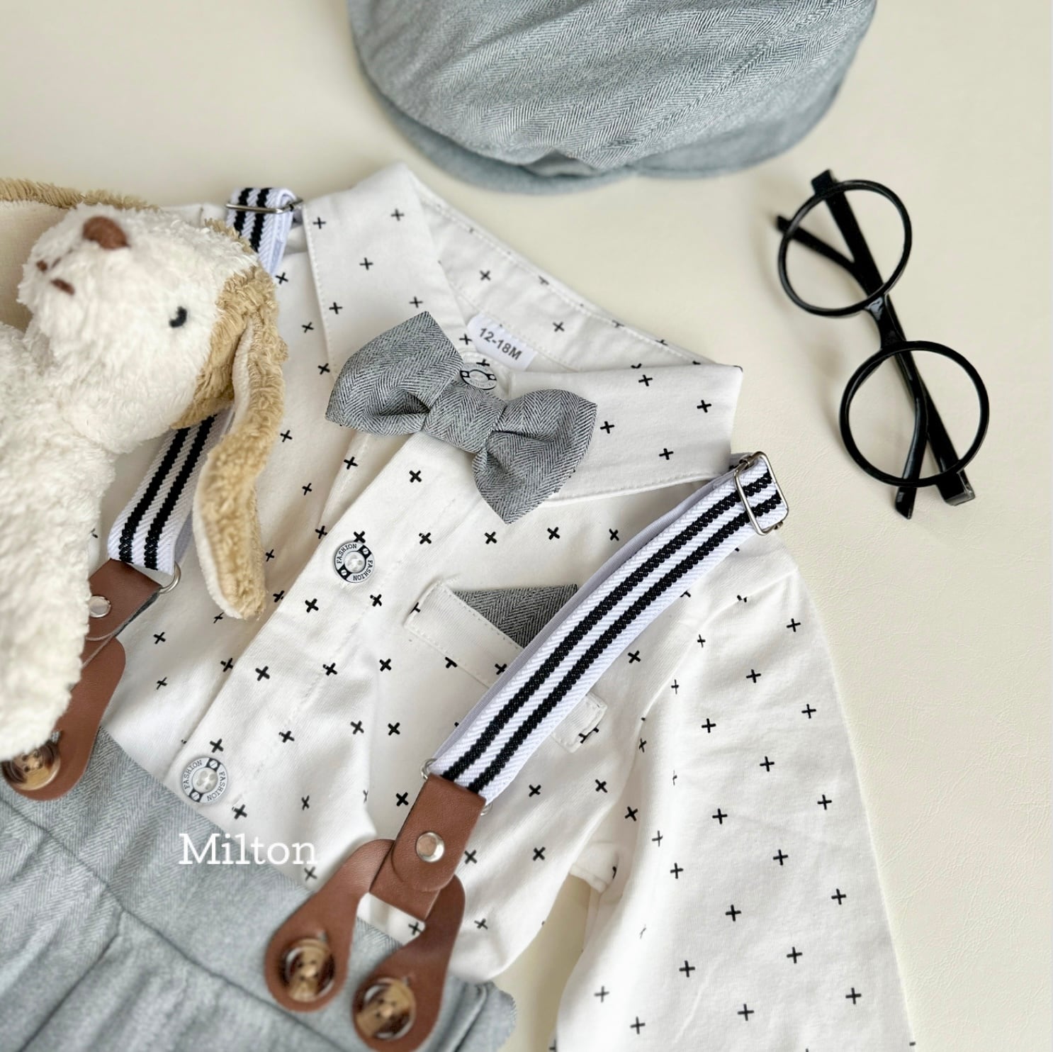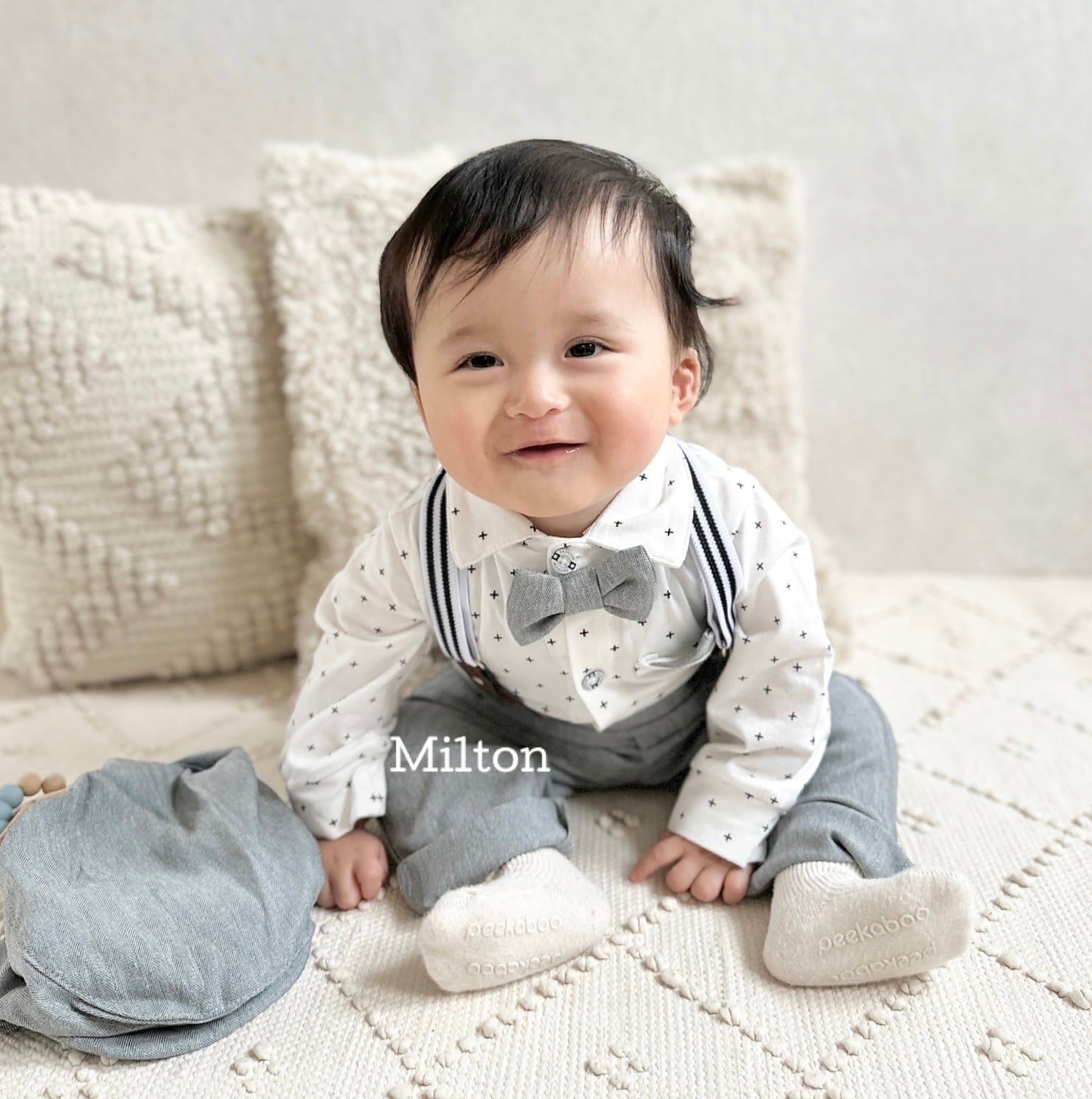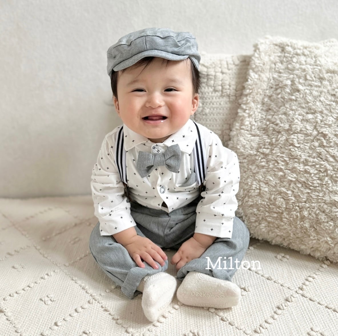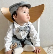 【グレーロンパースセットアップ】70 80 90 cm 男の子 スーツ ベビー キッズ フォーマル タキシード ベビーフォーマル キッズフォーマル ロンパース ベビー ベストスーツ フォーマル 男の子 白シャツ 男の子フォーマル スーツセット スーツ 蝶ネクタイ 長袖 お食い初め お宮詣り 誕生日 ハーフバースデー 七五三 長袖 入園式 発表会 結婚式 長袖 ベスト 韓国子供服 かわいい おしゃれ milton_babykids | ベビー キッズ フォーマル スーツ 男の子 子供服 靴 | milton_babykids ミルトンベビーキッズ