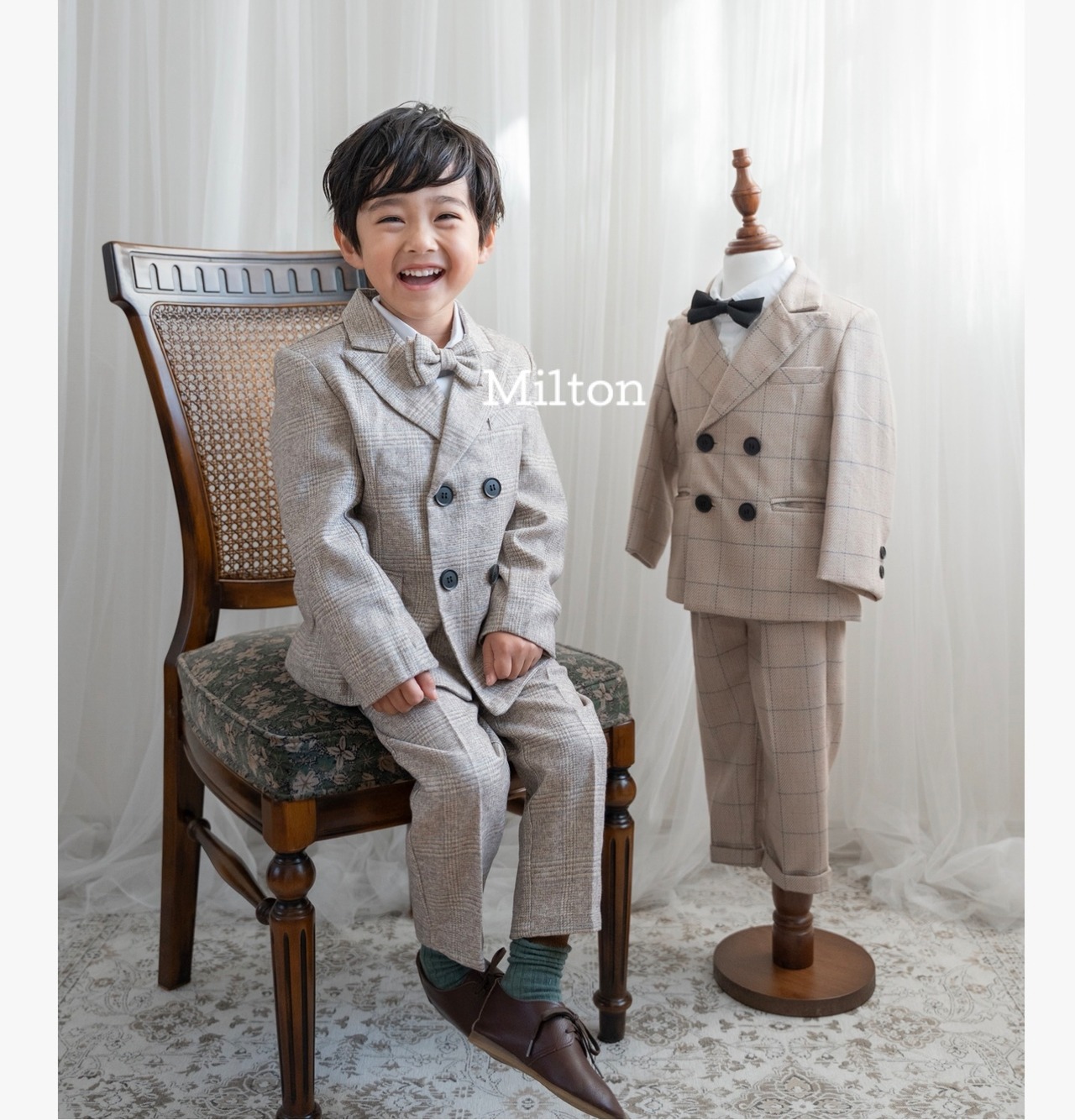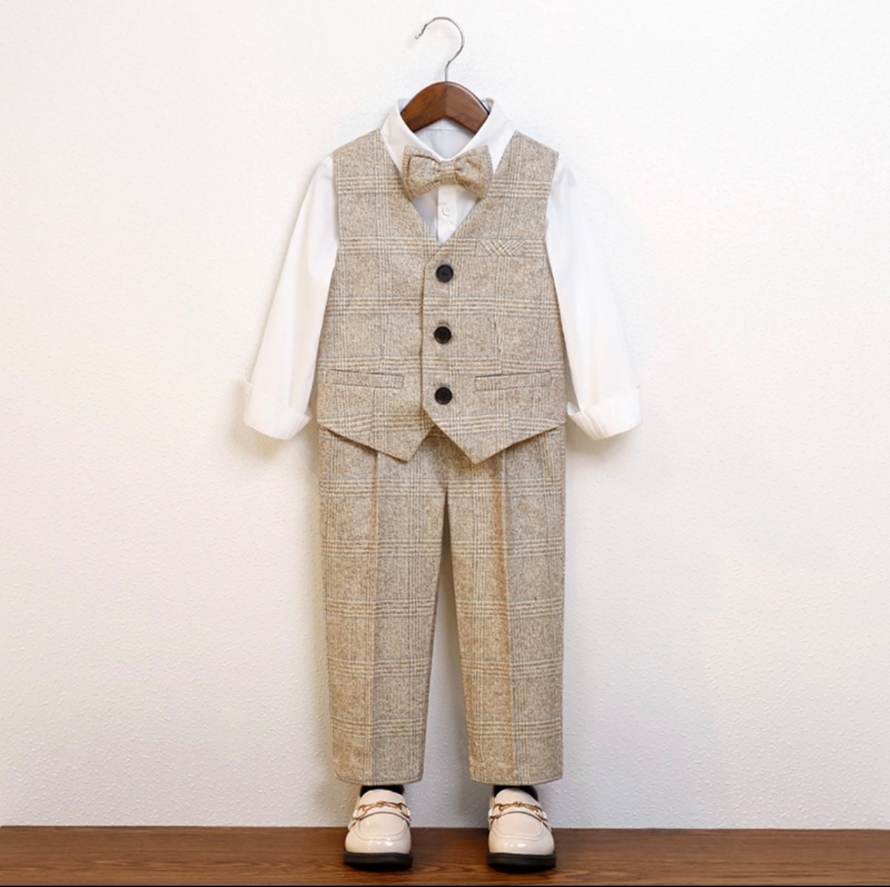 【ベージュジャケット&ベストスーツ】80 90 100 110 120 130 cm 男の子 スーツ ベビー キッズ フォーマル ベビーフォーマル キッズフォーマル ベストスーツ フォーマル 男の子 白シャツ 男の子フォーマル スーツセット スーツ 蝶ネクタイ 緑 長袖 お食い初め お宮詣り 誕生日 ハーフバースデー 七五三 長袖 入園式 発表会 結婚式 長袖 ベスト 韓国子供服 かわいい おしゃれ milton_babykids | ベビー キッズ フォーマル スーツ 男の子 子供服 靴 | milton_babykids ミルトンベビーキッズ
