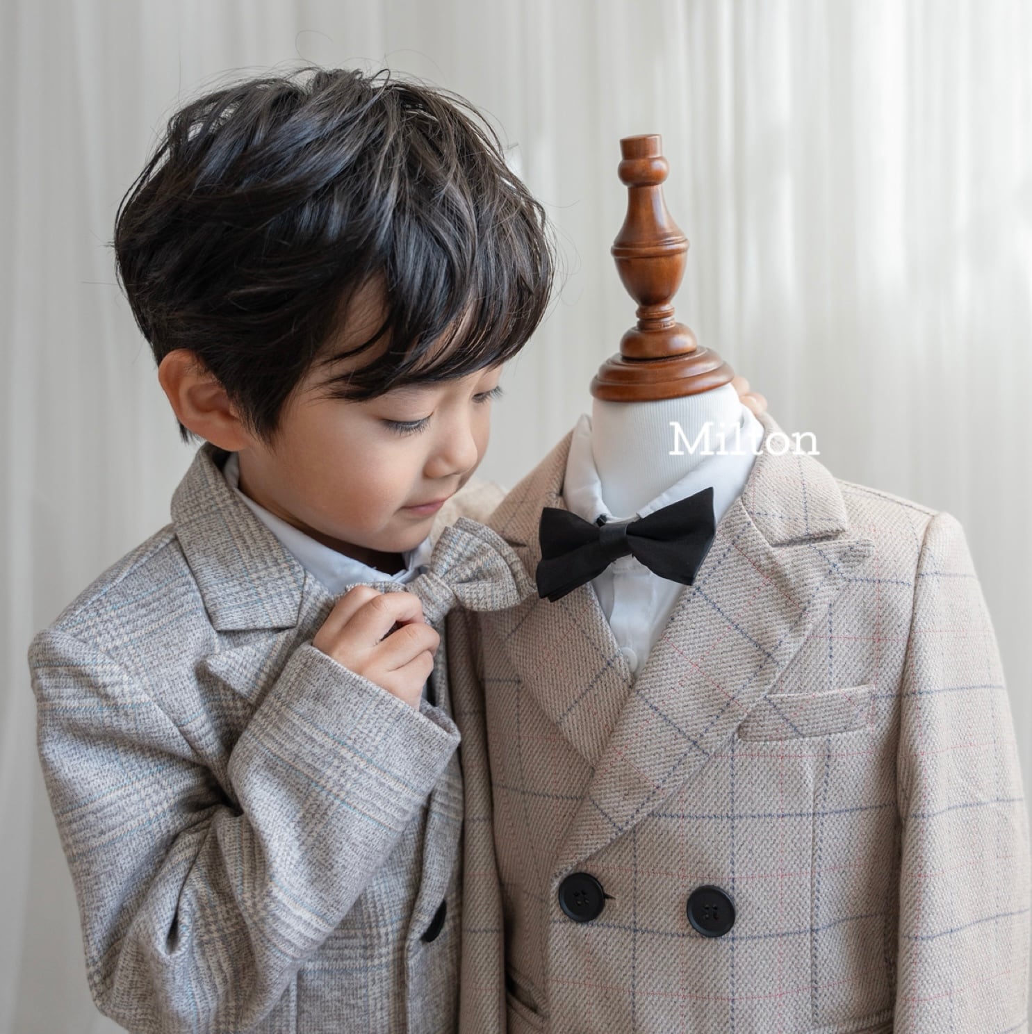 ※マネキンが着ているスーツは販売中の【ベージュチェックラメジャケットスーツ】です。