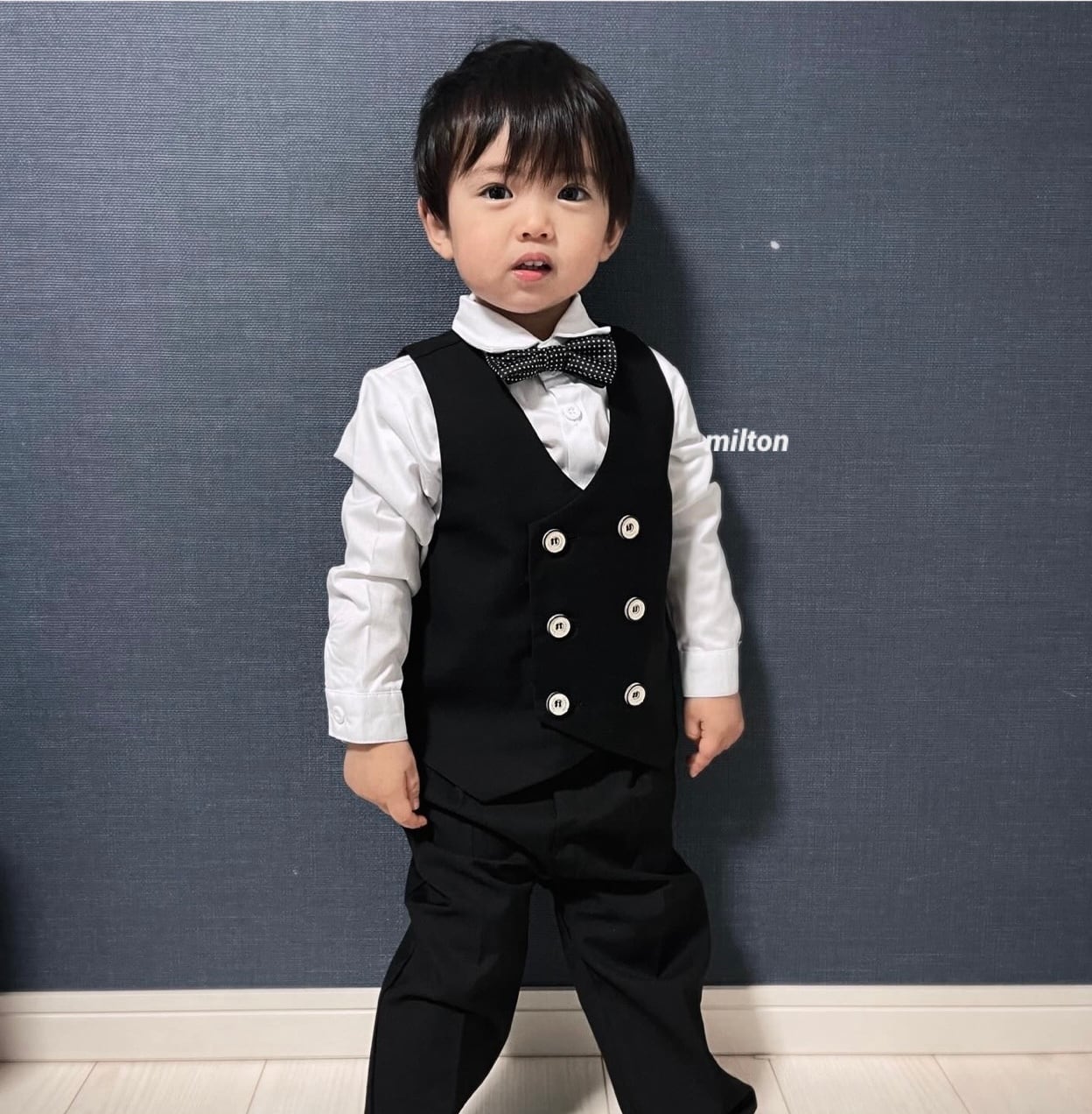 【ブラックベストスーツ】90 100 110 120 130 cm ブラックベスト付きジャケットスーツ 1歳 2歳 3歳 4歳 5歳 6歳 おしゃれ 男の子 キッズ ベビー フォーマルスーツ スーツ ブラック セットアップ ナチュラル 子ども服 子供服 タキシード ベスト フォーマル セットアップ キッズフォーマル ベビーフォーマル 5点セット 七五三 入園式 入学式 誕生日 結婚式 オフホワイト ベスト 蝶ネクタイ 長袖 かっこいい 人気 セレモニー | ベビー キッズ フォーマル スーツ 男の子 子供服 靴 | milton_babykids ミルトンベビーキッズ