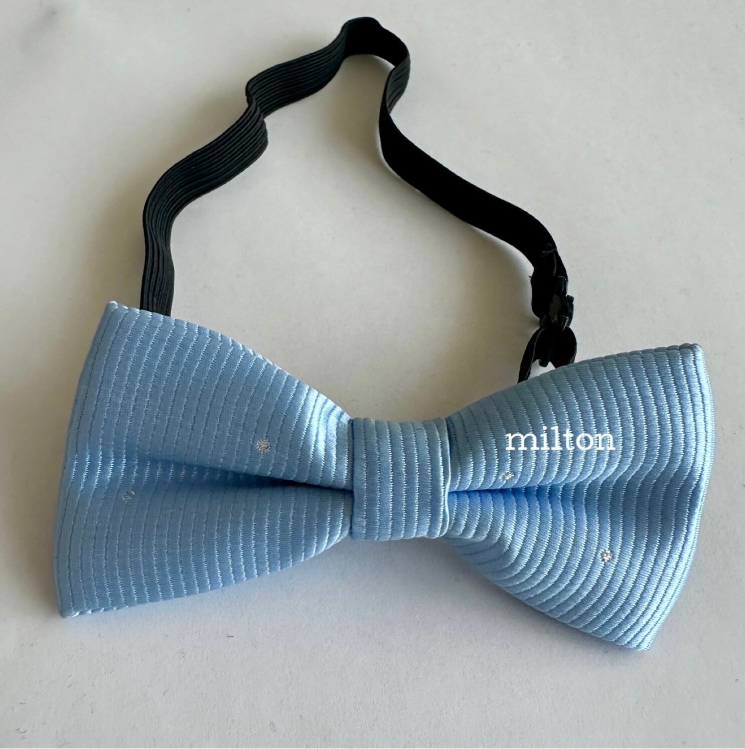 明るい水色地にラメドット柄がかわいい蝶ネクタイです。