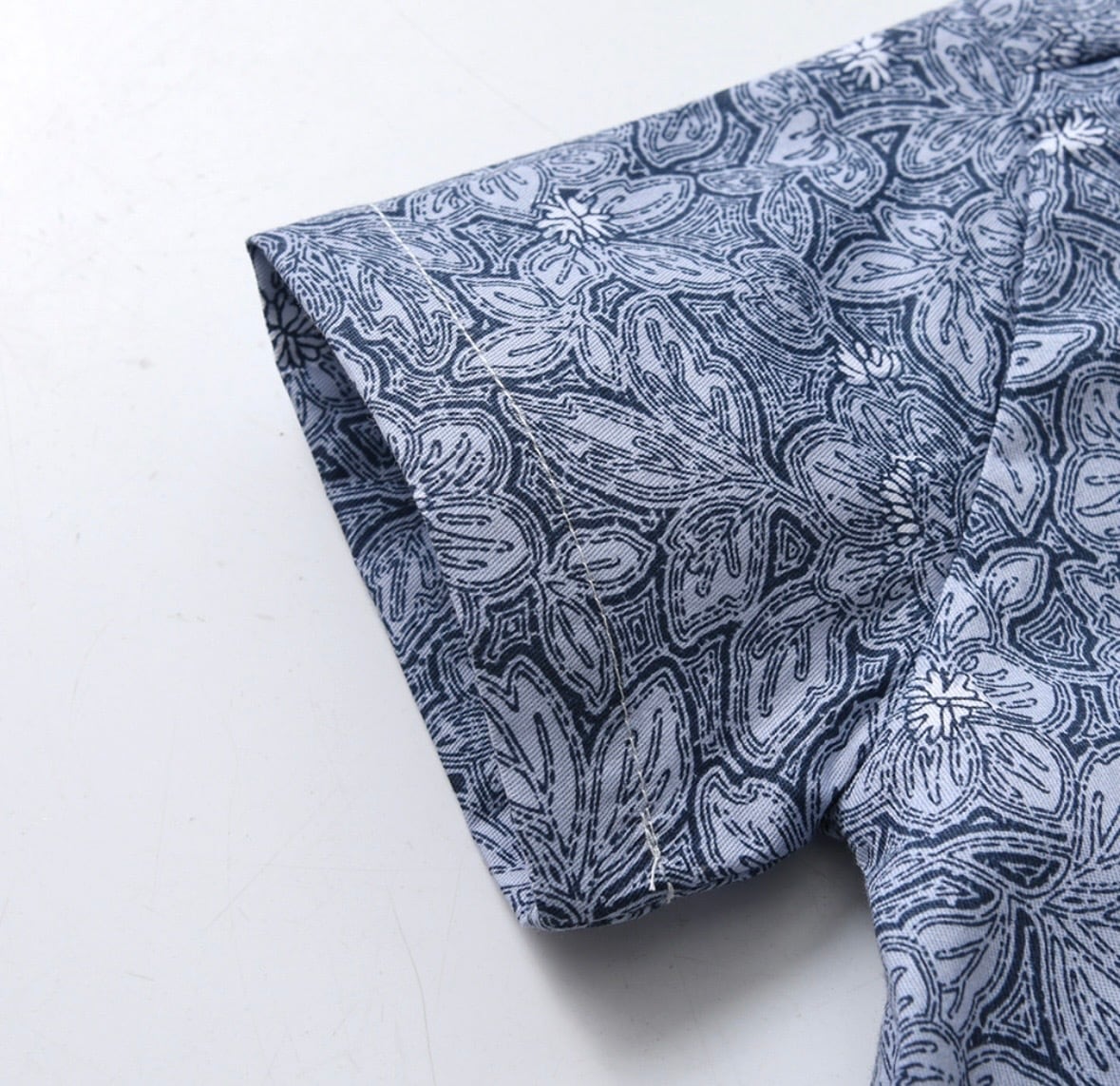 普段使いもできるおしゃれな柄シャツがポイントのベストスーツ。結婚式やバースデーフォトなどに活躍してくれる半袖フォーマル 4点セットです。