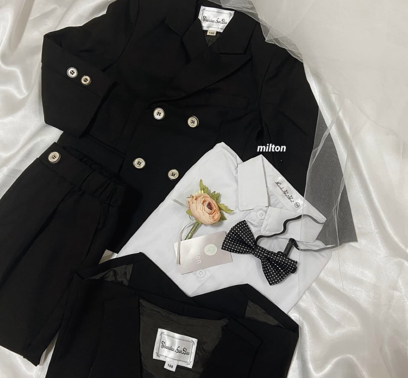 ⚫︎送料無料【商品番号j20】90 100 110 120 130 cm ブラックベスト付きジャケットスーツ 1歳 2歳 3歳 4歳 5歳 6歳 おしゃれ 男の子 キッズ ベビー フォーマルスーツ スーツ ベージュ セットアップ ナチュラル 子ども服 子供服 タキシード ベスト フォーマル セットアップ キッズフォーマル ベビーフォーマル 5点セット 七五三 入園式 入学式 誕生日 結婚式 オフホワイト ベスト 蝶ネクタイ 長袖 かっこいい 人気 セレモニー | ベビー キッズ フォーマル スーツ 男の子 子供服 靴 | milton_babykids ミルトンベビーキッズ