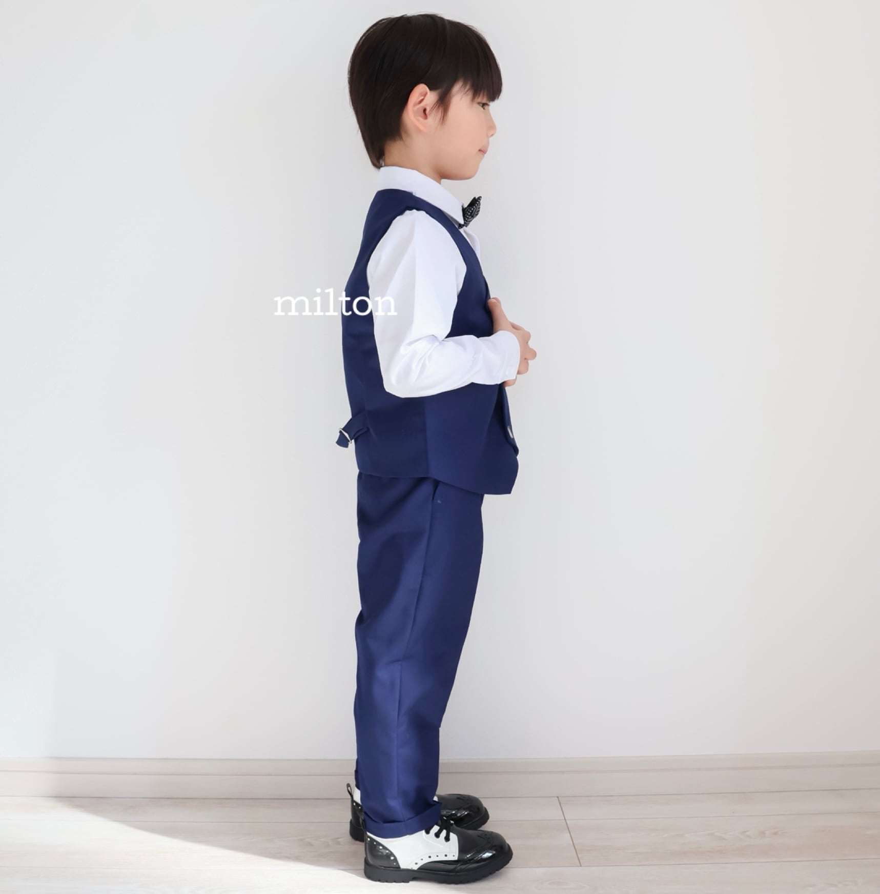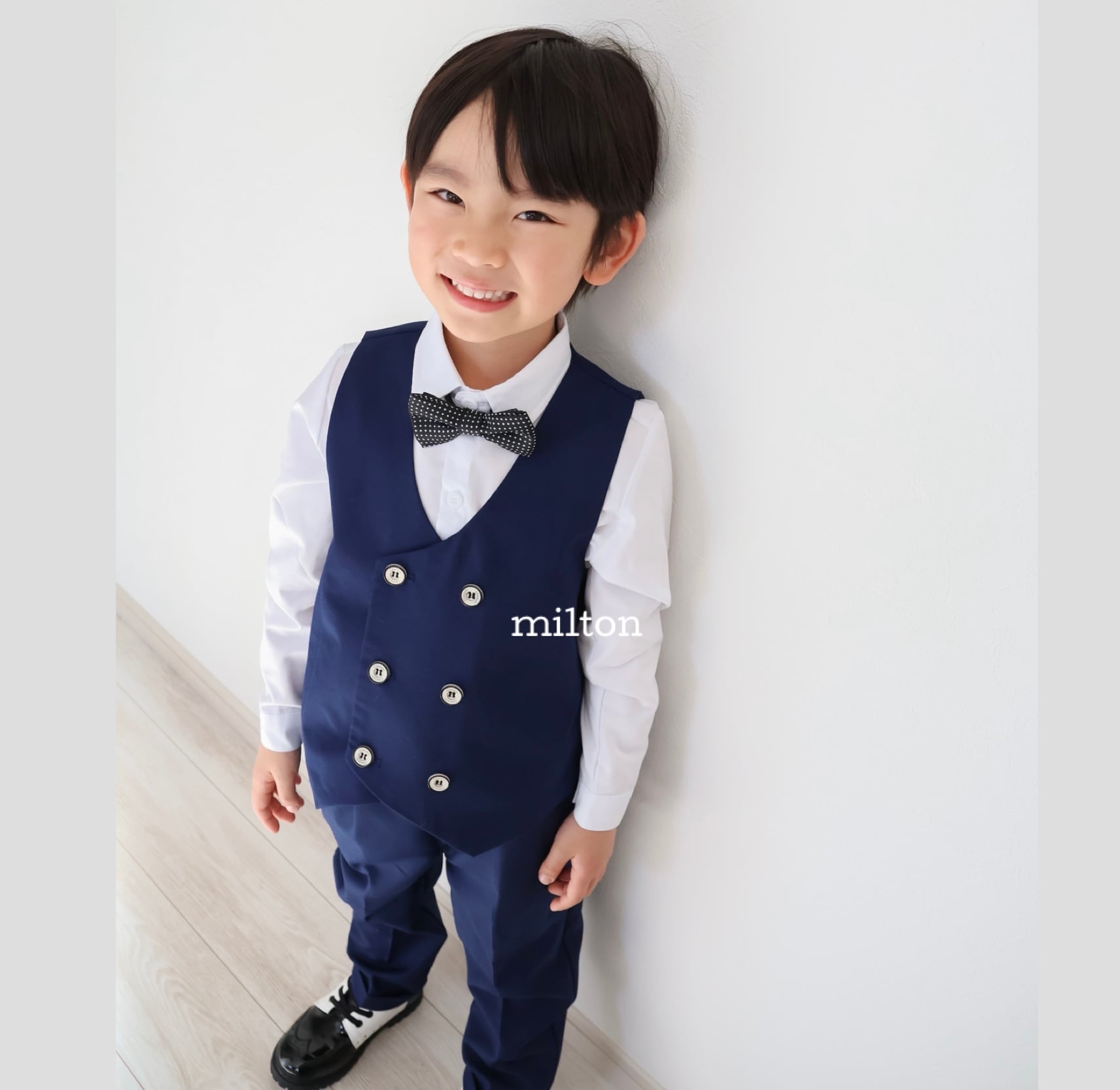 一部即納【ネイビーベスト付きジャケットスーツ】100 130 cm ネイビーベスト付きジャケットスーツ 1歳 2歳 3歳 4歳 5歳 6歳 おしゃれ 男の子 キッズ ベビー フォーマルスーツ スーツ ネイビー セットアップ ナチュラル 子ども服 子供服 タキシード ベスト フォーマル セットアップ キッズフォーマル ベビーフォーマル 5点セット 七五三 入園式 入学式 誕生日 結婚式 オフホワイト ベスト 蝶ネクタイ 長袖 かっこいい 人気 セレモニー 2026年最新