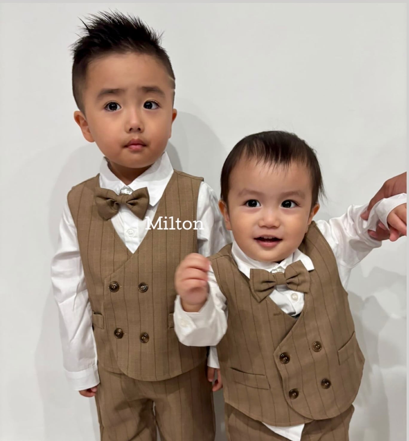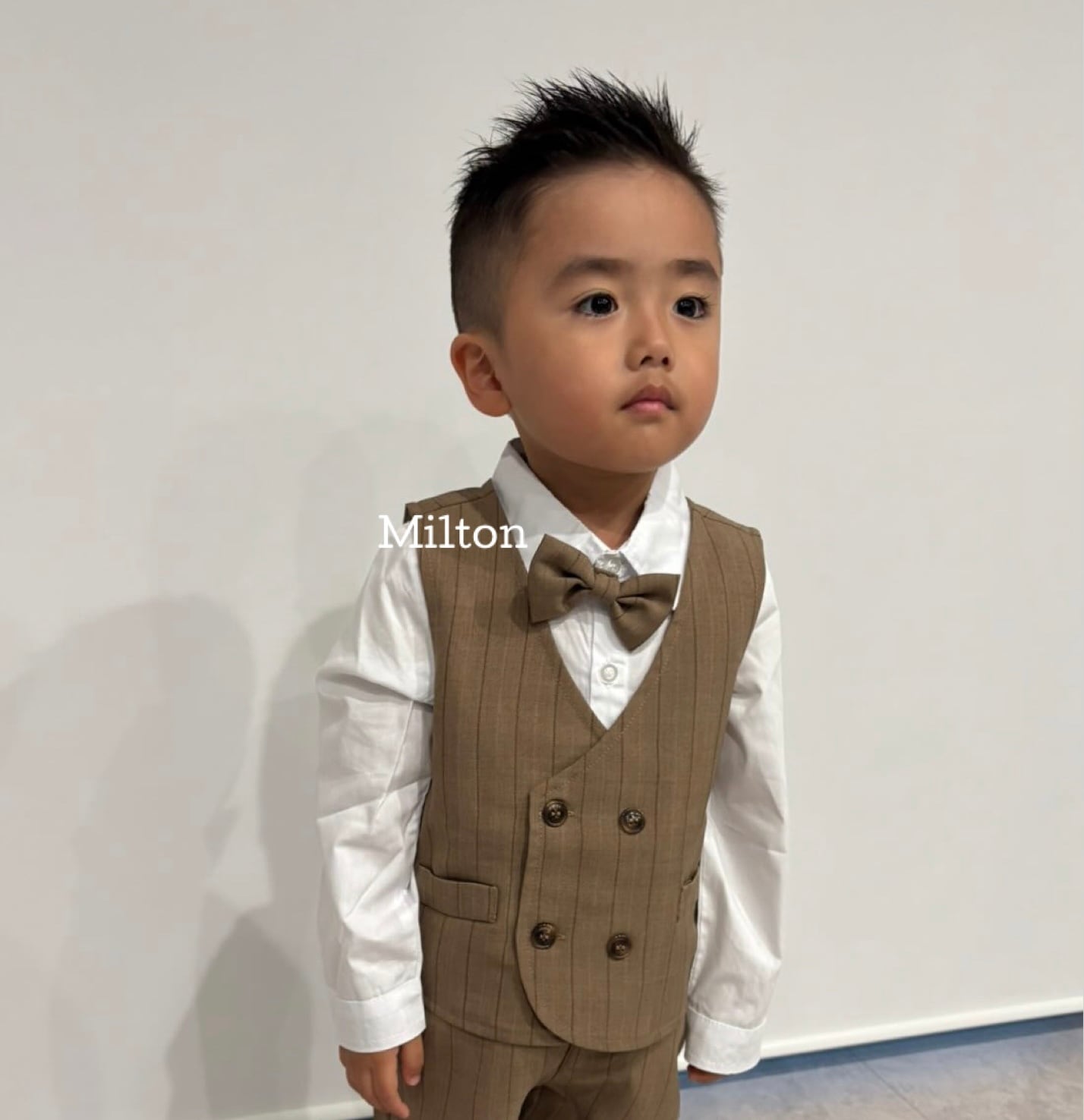 ⚫︎【ブラウンストライプスーツ】送料無料 80 90 100 110 cm 男の子 スーツ ベビー キッズ フォーマル タキシード ベビーフォーマル キッズフォーマル ベストスーツ フォーマル 男の子 白シャツ 男の子フォーマル スーツセット スーツ 蝶ネクタイ 長袖 お食い初め お宮詣り 誕生日 ハーフバースデー 七五三 長袖 入園式 発表会 結婚式 長袖 ベスト 韓国子供服 かわいい おしゃれ milton_babykids | ベビー キッズ フォーマル スーツ 男の子 子供服 靴 | milton_babykids ミルトンベビーキッズ