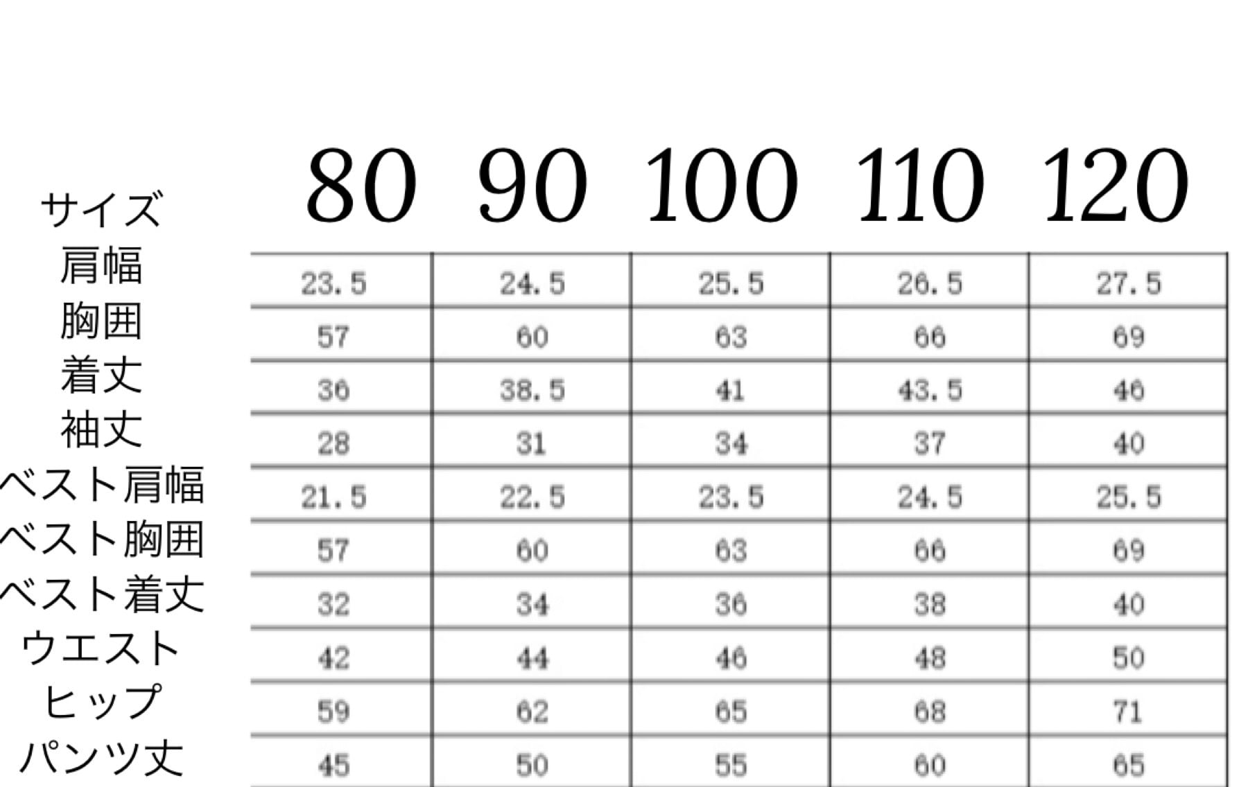 普段の洋服ジャストサイズ 100size